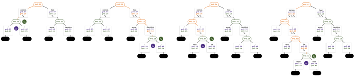 五回合模拟结束时的搜索树。边上🐾的数量代表该边的访问量。