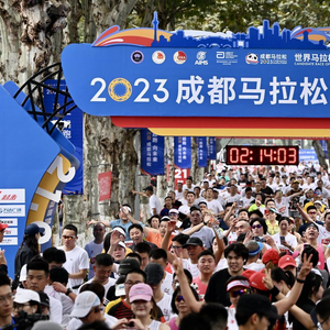 10月29日,2023成都马拉松正式开赛,3.5万名跑者站上赛场,通过跑步感受城市气息。