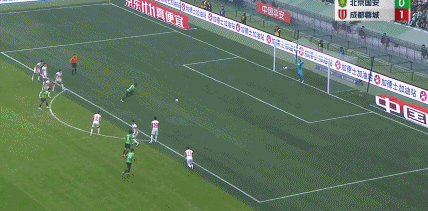 在大量远征球迷到场助威的激励下,成都蓉城也打出了梦幻开局。开场不到3分钟,金敃友头球顶入禁区,费利佩机敏地从站位更有优势的两名国安后卫身后挤到前面,面对门将侯森抢射破门。