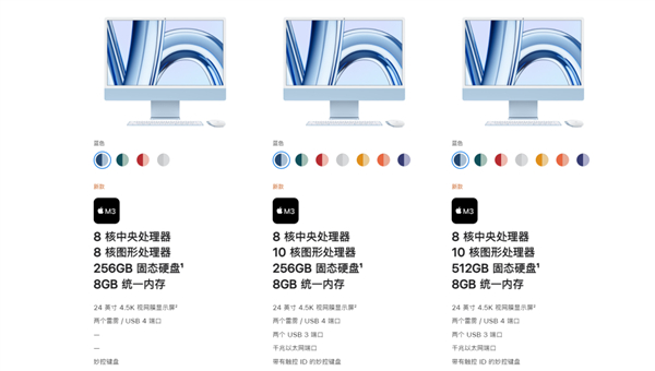 至于一体机 iMac 只有搭载 M3 的版本,起售价 10999 元,拉满 21499 元。