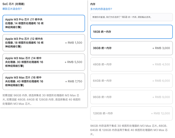 16寸的 MacBook Pro 则不提供基础的 M3 处理器版本,M3 Pro / M3 Max 两个版本的起售价分别是 19999 元 / 27999 元。