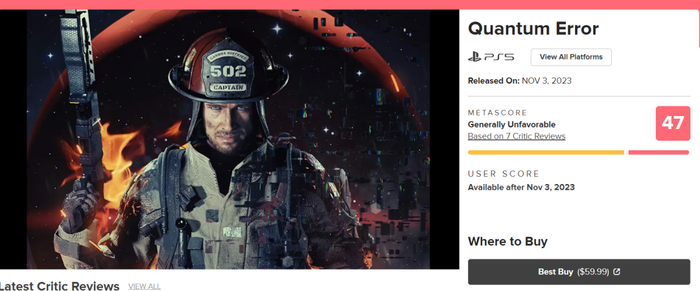 今天,《量子误差》的PS5版本媒体评分解锁,Metacritic评分仅有47分。这个售价60美元、使用虚幻5引擎开发的游戏乍看素质不俗,但参与测评的媒体们显然不这么认为。