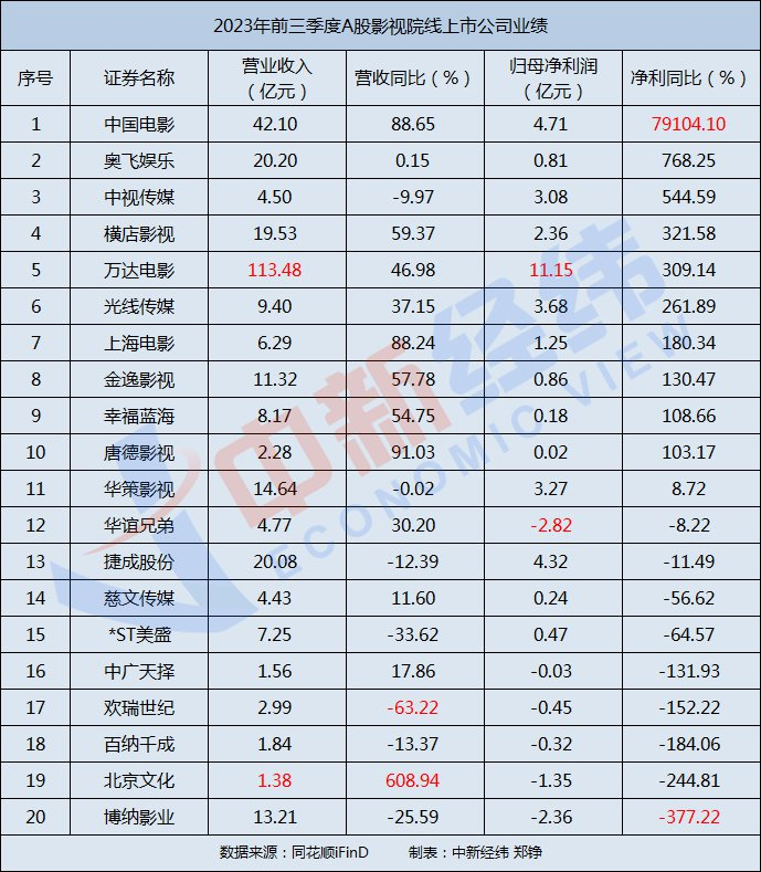 V观财报|影视股三季报:万达电影营收超百亿 博纳影业净利大降近380%
