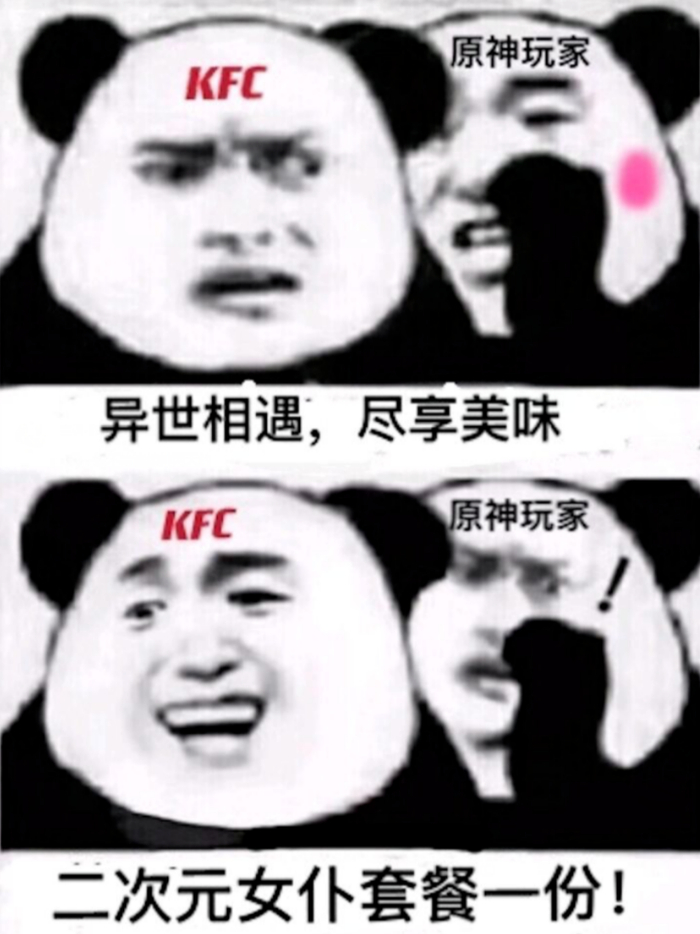 先说说对外宣传。2021年,《原神》和KFC进行联动,满大街的KFC门店都回荡着“异世相遇,尽享美食”的羞耻口令,其衍生出的各种梗图、表情包和二次创作的段子,也回荡在整个互联网上。《原神》玩家用自己的社会性死亡为代价,换来了一次爆炸式的破圈。