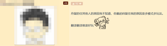 良好的社群氛围对新玩家也意义重大。《明日方舟》有大量的攻略视频,任何活动、关卡都有各种各样不同配置方案的攻略可供参考,这极大地降低了塔防玩法的难度门槛。我在新手时期也受惠良多,如果没有这么多愿意创作攻略视频的玩家,很难说我会不会在角色阵容成型前,因为某个高难度关卡退坑。