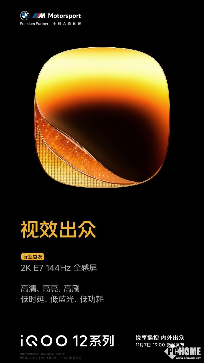 iQOO 12系列手机将首发2K E7 144Hz全感屏,具有高清、高亮、高刷、低时延、低蓝光、低功耗等优势。