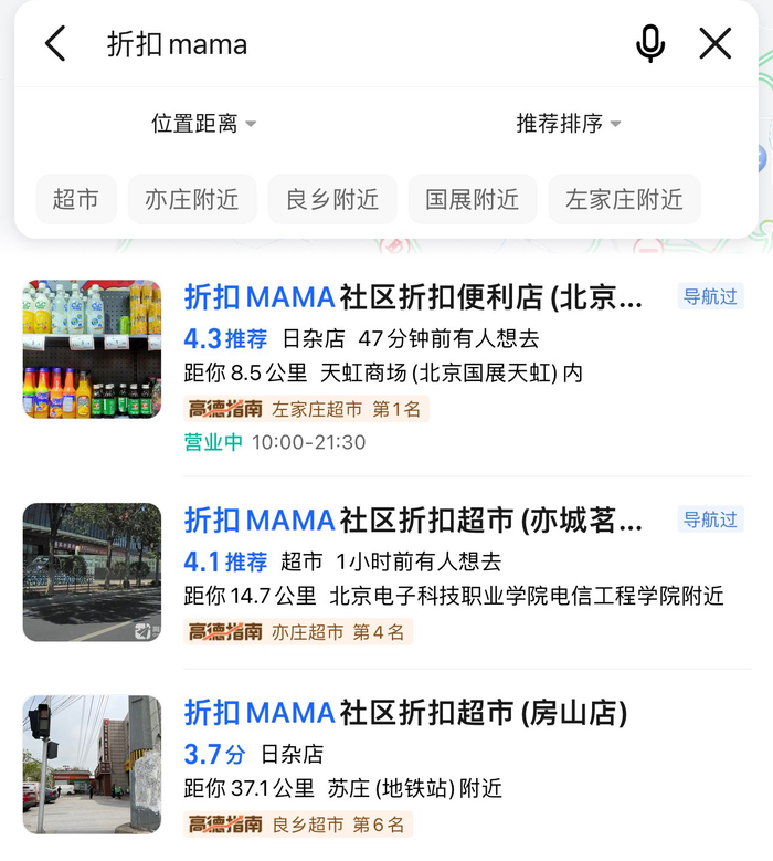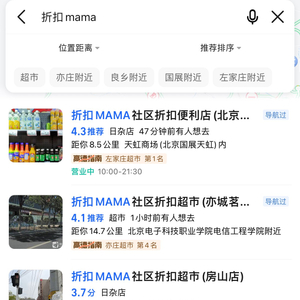 北京搜索折扣MAMA,显示有三家线下店,房山店太远了,我们就选择市区的两家店探访探访,看看究竟是什么情况。