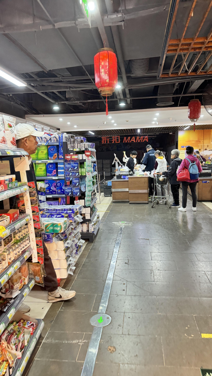 不过,等我们真走过去发现,排队结账的是B1超市的用户,并不是折扣MAMA的用户。