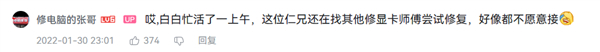 虽然结果没能把卡修好,但这样的视频放出来之后,不仅有助于弹幕互动和交流,张哥有时候也能从评论中获取一些他可能在维修过程中忽略掉的点,从而不断增长自己的技术。