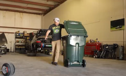 Chris Rollins历经一番折腾,总算是成功把垃圾桶缓缓开到了赛道上,他将会在这里直线加速,然后被记录到最高速度。这一幕还真拍出跑车的感觉了: