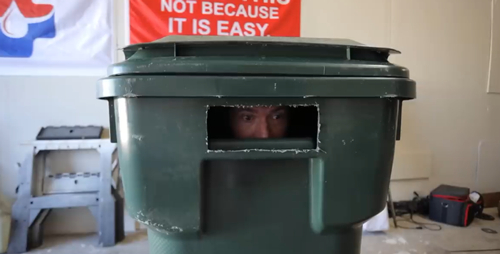 他还给自己设定了三个目标,第一就是要关闭盖子,在封闭的垃圾桶中驾驶它,这样确实有开车的感觉。