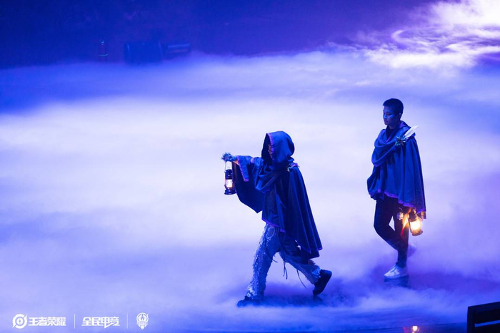开幕式上,决赛两队的选手身着披风,手持提灯,在化作大海的舞台上穿越风浪,划破迷雾,集结舟头,为最终决战做好准备。