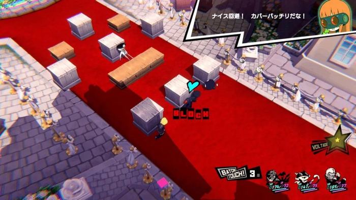 游研社:没有专门的教学关卡,而是在故事的对话中教会玩家“总攻击“(在P5T中称为”TRIBANGLE”)等各式技巧是吧?