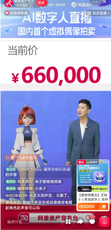 淘宝推出全网首次数字人拍卖,95后小伙66万拍走数字人