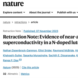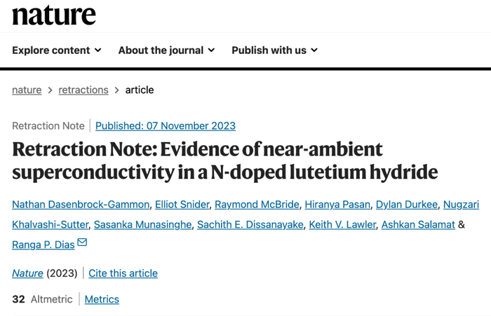 11 月 7 日,《Nature》杂志宣布,撤回今年 3 月 Ranga Dias 团队发表的室温超导论文。