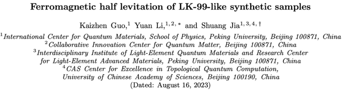 8 月初,北京大学量子材料科学中心(ICQM)提交到 arXiv 的一篇论文认为:其团队尝试合成的 LK-99 样品不具有超导性。