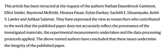 现在,随着撤回成为现实,研究人员发现室温超导体的希望看起来更渺茫了。