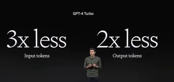 OpenAI这一次并没有将GPT的智能化提升到下一阶段,而是选择补全“短板”,或者说,通过产品体验升级从而吸引更多用户。一个直接的例证就是,OpenAI决定将API体系全面降价,GPT-4 Turbo的输入价格降低三倍,新价格为每千个tokens一美分,输出价格降低两倍,新价格为每千个tokens三美分。山姆·奥特曼在发布会现场表示,GPT-4 Turbo总体费率比GPT-4便宜了2.75倍以上。