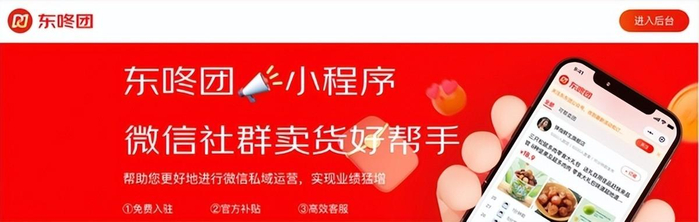 2022年2月,京东推出了东咚团,东咚团更强调商品发布、分享、收单、统计等功能属性,展示了东咚团作为社群团购工具的定位。且只有获得定向邀请或者邀请码的团长才能发起团购,东咚团的团长没有上架商品的权限,只能在后台的选品池中选择商品开团,而选品池里的商品,都是京东平台的商家上传的。