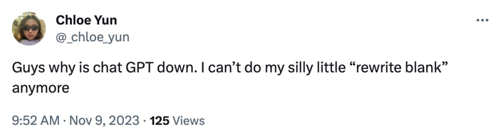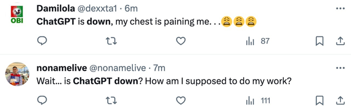 网友反应也很快:「ChatGPT 宕机了,我的工作怎么办?」