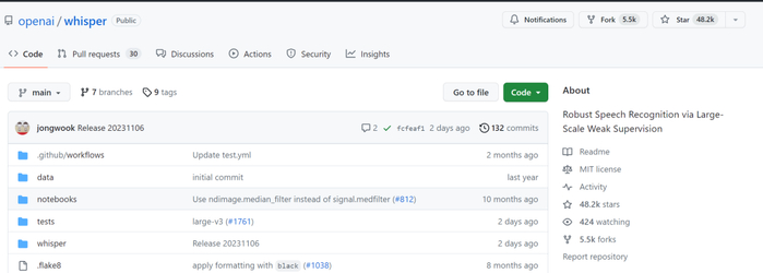 项目地址:https://github.com/openai/whisper/