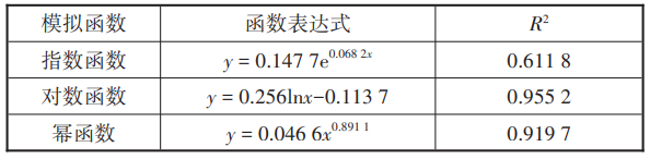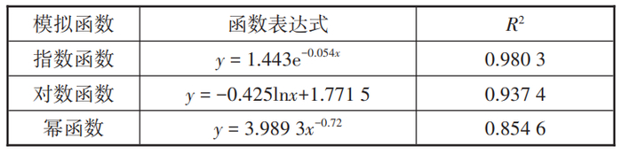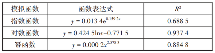 不同函数下VoLTE承载语音占比模拟情况如表2所示,其中对数函数拟合效果相对比较好,但R²值小于0.95。因此采用不同函数对非VoLTE承载语音占比曲线进行模拟,模拟结果如表3所示,其中指数函数模拟的非VoLTE承载语音占比 R²达到了0.98,拟合效果最好。因此,本文采用指数函数模拟非VoLTE承载语音占比,即y=aebx,VoLTE承载语音占比则可以表示为y=1-aebx。
