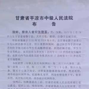 近日,网传甘肃省平凉市中级人民法院发布一则死刑执行布告,称静宁县一小学校长张隆基在任教期间奸淫、猥亵多名幼女,依法判决张隆基犯强奸罪,判处死刑;犯猥亵儿童罪,判处有期徒刑10年。数罪并罚,决定执行死刑,剥夺政治权利终身。该院遵照最高人民法院院长签发的执行死刑命令,已于今年11月7日将张隆基验明正身,押赴刑场,注射执行死刑。布告落款时间为今年11月7日。