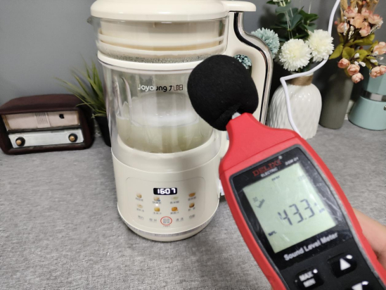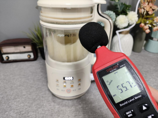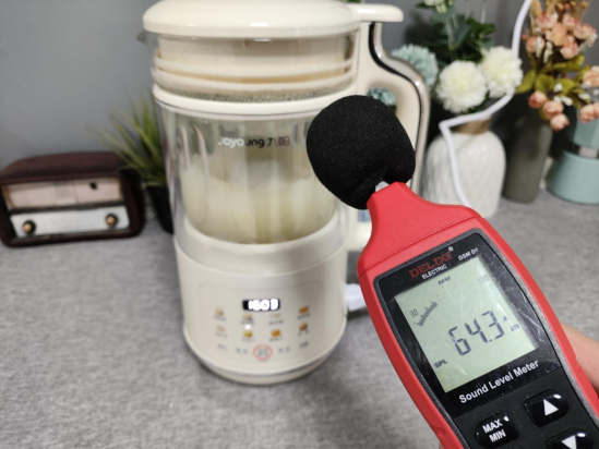 在刚才制作豆浆、香蕉牛奶时,我们使用了分贝仪记录下了制浆过程中的实时噪音变化。