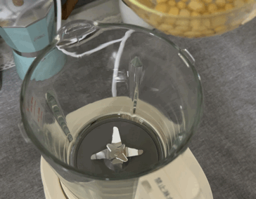 首先是豆浆,无论是豆浆机、破壁机,制作豆浆均属于基本功。笔者将清洗好的黄豆和适当清水直接倒入杯中,然后选择豆浆程序开始制作。