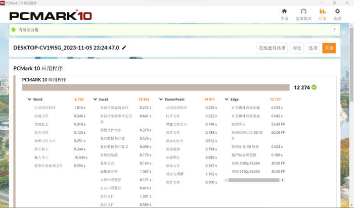 在日常生产力方面,通过PCMARK10的应用程序进行测试,包括常用的OFFICE软件打开、拷贝、编辑等实际操作,也能很好的反映出SSD的性能。最终,SMI70取得了12274的高分,除了处理器的优势外,SSD的配合也是非常关键的。