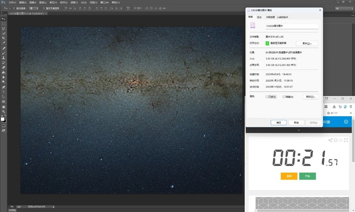 最后测试一下图片加载能力,这个也可以很好反应SSD的实际表现。测试图片为一张3.92GB星空图片,全部加载完成一共用时将近22秒,证明SMI70的读写性能还是非常高的,因为在一般的笔记本上,全部加载完成同一个文件需要超过40秒的时间,可大幅提升设计类办公用户的效率。
