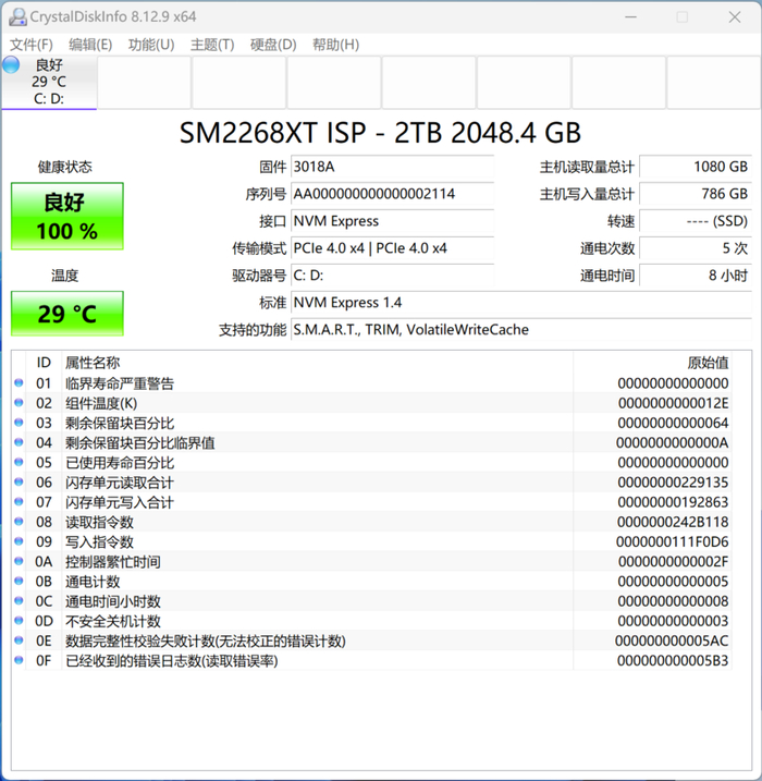 从官方出了解到,这颗慧荣SM2268XT主控采用双核 ARM R8 架构与四通道设计,带宽高达 3200MT/s,多核设计可自动平衡计算负载,以提供更高速的传输性能,基于全新第 8 代 NANDXtend ECC纠错技术,提供更强大的错误校正能力,有效保障数据完整性。