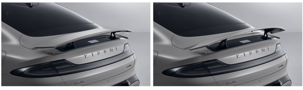 就是后头这个 xiaomi 字母标的 logo ,总感觉字有点太多了,以至于油头设计师实在看不下去,干脆 “ 抠掉 ” 了车标,并且把下面的装饰件做了熏黑处理。