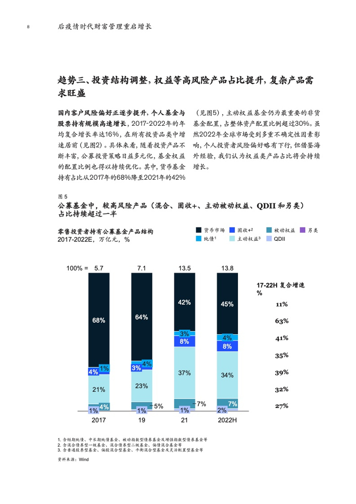 趋势三:投资结构调整,权益等高风险产品占比提升,复杂产品需求旺盛