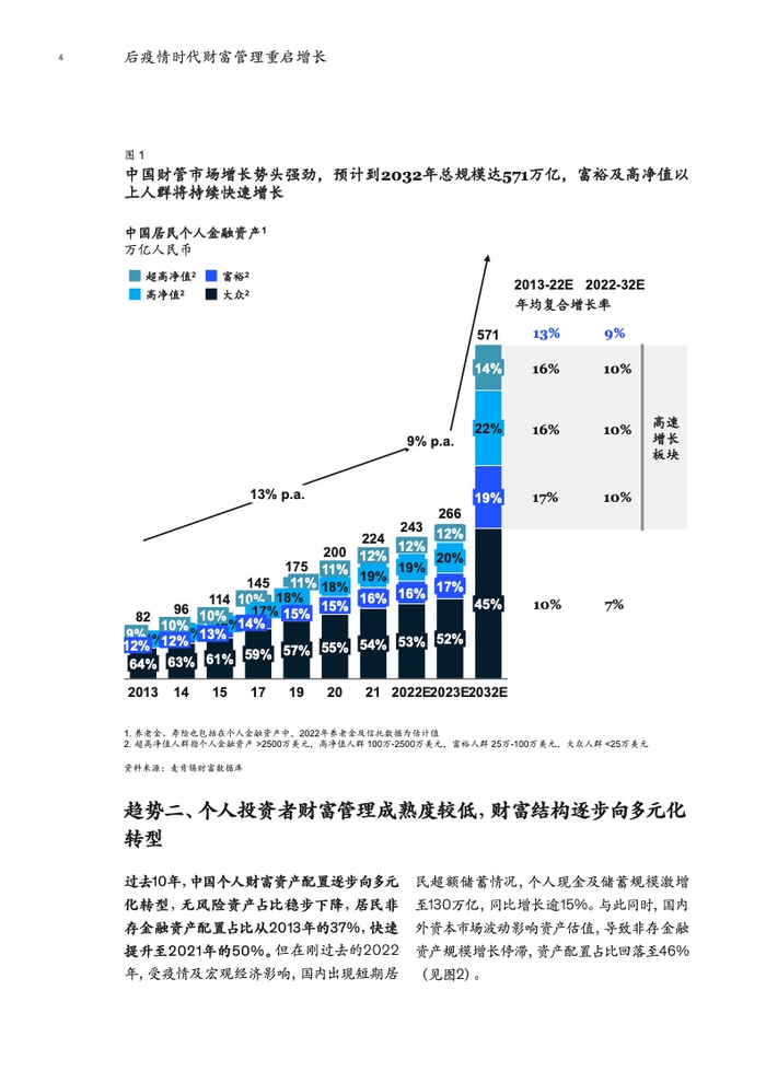 趋势一:财富管理市场持续增长,富裕及以上客群成为核心驱动力