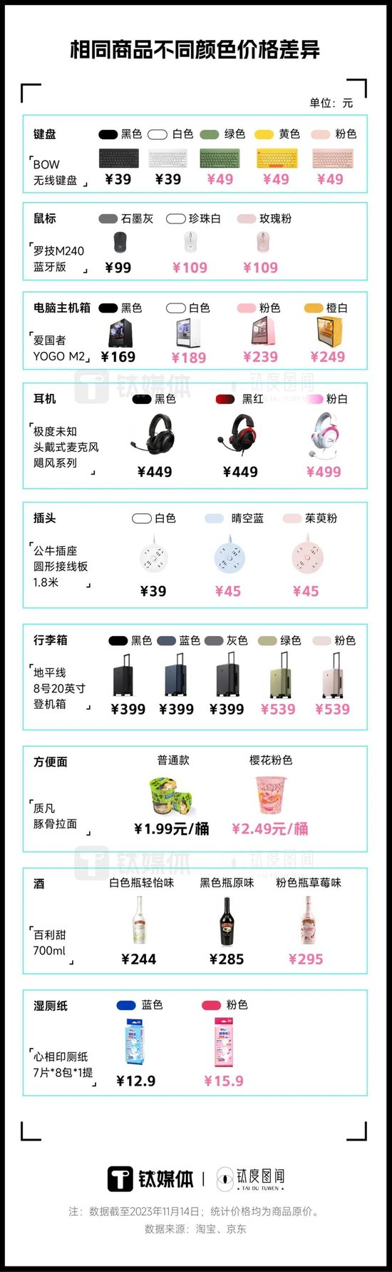 一样的商品,换成粉色等鲜明颜色,再打上“女性专属”等标签,价格能提升多少?在消费市场,为什么会产生“粉红税”?本期钛媒体·钛度图闻从数据层面作出梳理。