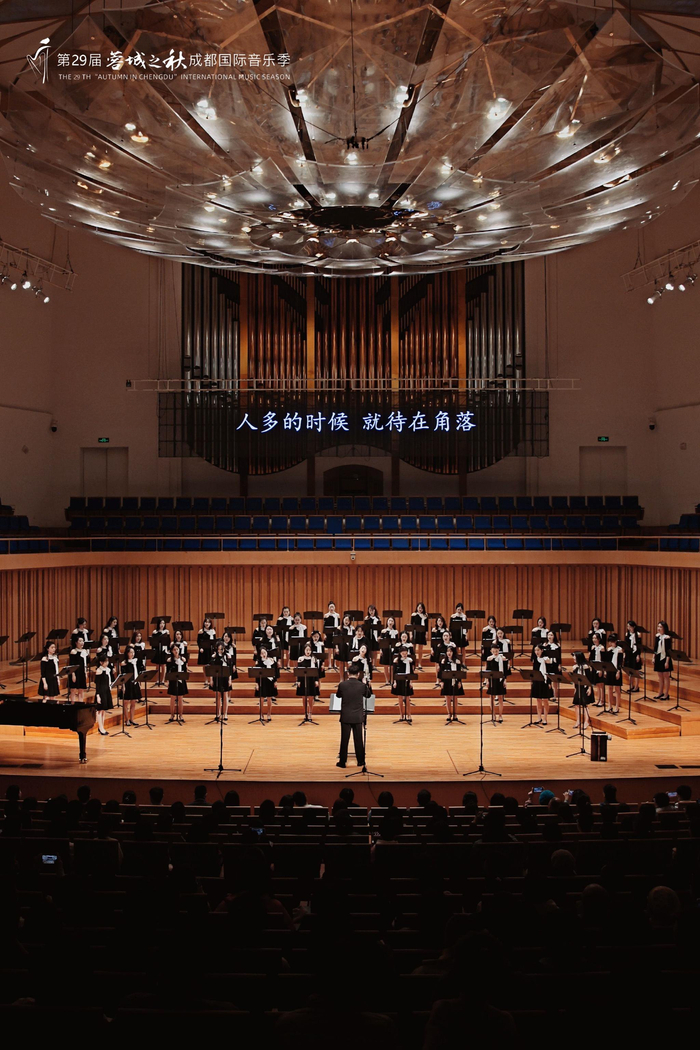 成都“知更”室内合唱团对于“蓉城之秋”再熟悉不过——自2020年起,他们已连续三年参与“蓉城之秋”成都国际音乐季的剧目展演,今年他们也没有错过这场美好的相遇:11月19日晚,成都“知更”室内合唱团华语流行经典·专场音乐会“流金岁月”在成都城市音乐厅悠悠唱响。