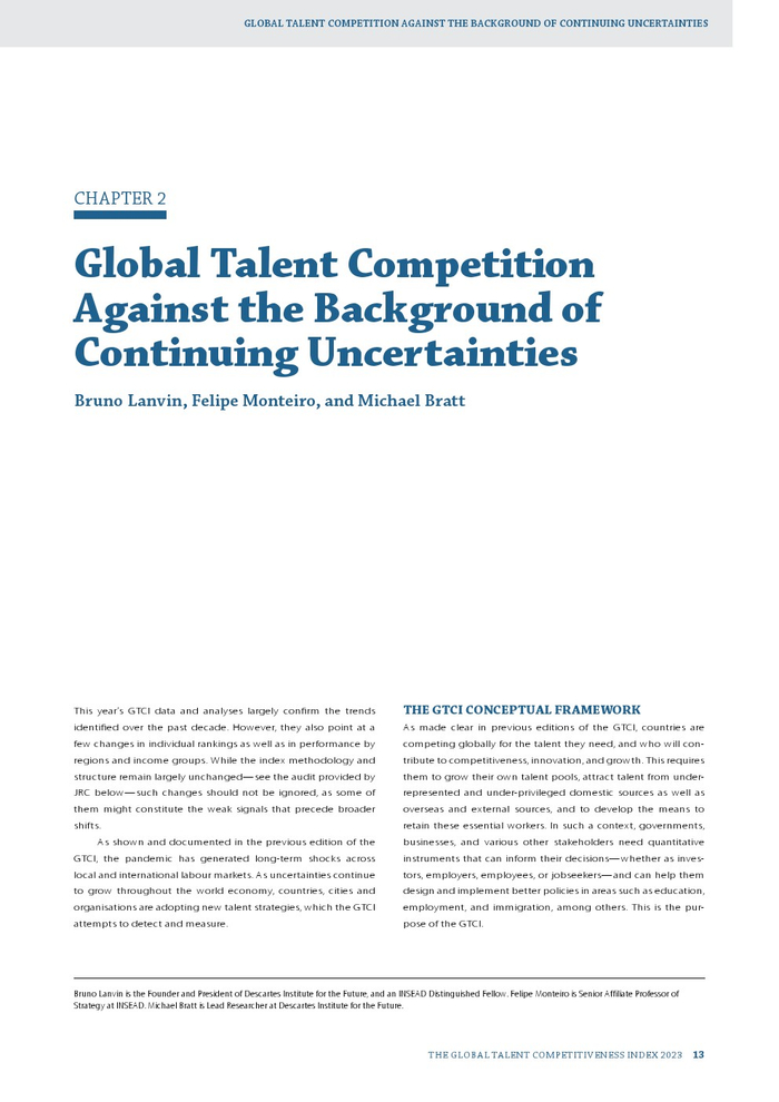 1.作为国家、城市和组织的竞争力、创新和地缘政治软实力的关键因素,人才竞争力将变得更加重要。