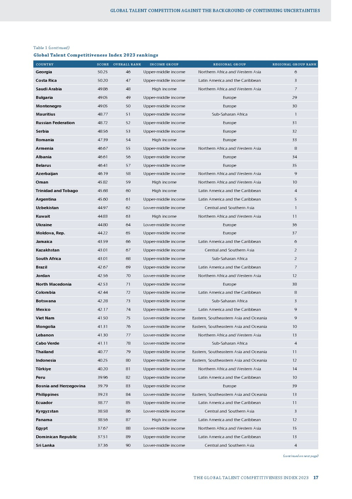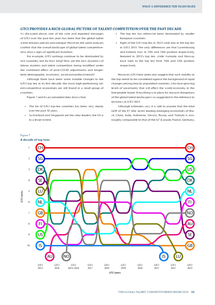 INSEAD发布了“2023年全球人才竞争力指数(GTCI)”,瑞士、新加坡和美国仍然是全球最具人才竞争力的国家。