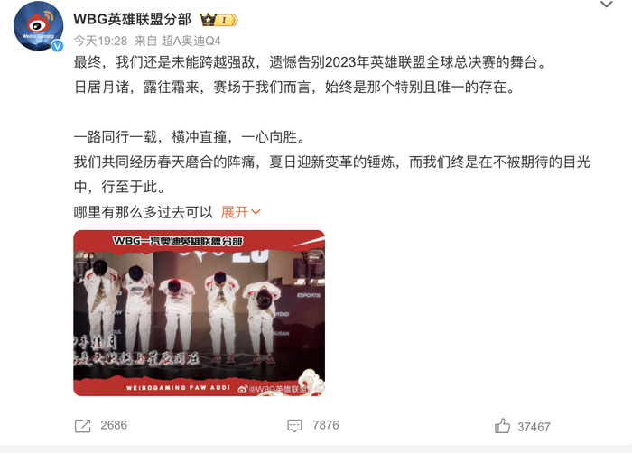 除了WBG外,此次来自中国LPL赛区的BLG、JDG都晋级了2023全球总决赛四强,获得了不少的关注度,而这背后布局的资本是B站、京东这样的互联网大厂,服饰集团李宁投资的LNG也入围了八强。