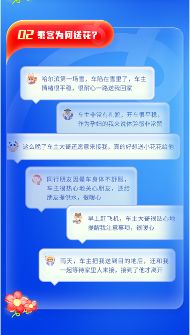数千名顺风车车主畅谈送花理由 乘客友善体谅、有趣温暖成关键词