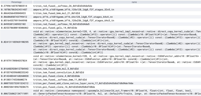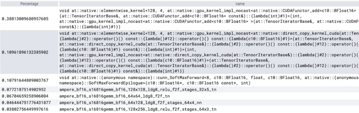 现在可以看到内存高效的注意力内核占用了 GPU 上大量的计算时间: