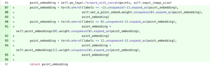 具体来说(参考上图更容易理解,出现的变量名都在代码中),该研究发现在 SAM 的图像编码器中,有充当坐标缩放器(coordinate scalers)的变量 q_coords 和 k_coords,这些变量都是在 CPU 上分配和处理的。然而,一旦这些变量被用来在 rel_pos_resized 中建立索引,这些索引操作就会自动的将这些变量移动到 GPU 上,这种复制会导致 GPU 同步。为了解决上述问题,该研究注意到可以使用 torch.where 重写这部分内容来解决问题,如上所示。