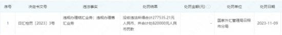 具体来看,日照银行因违规办理结汇业务、违规办理售汇业务,被国家外汇管理局日照市分局没收违法所得合计27.75万元,并处罚款82万元,共计被罚没约110万元。