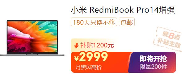 小米 RedmiBook Pro 14 增强版 16G+512G 日常售价 4199 元,今日 20 点限量 2999 元: