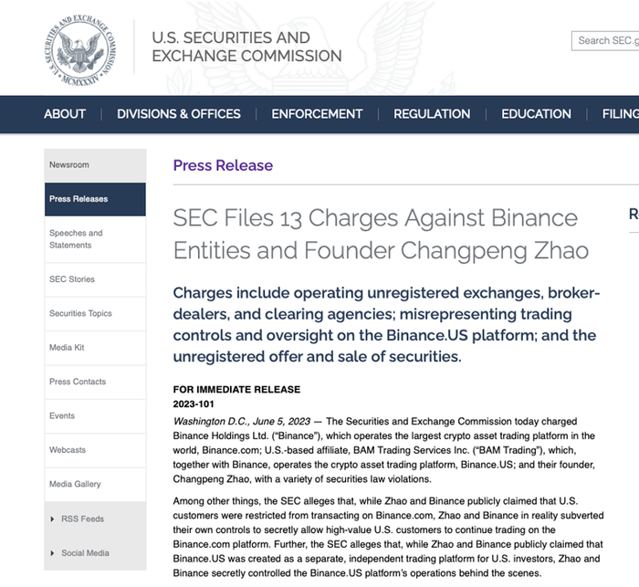 需要额外指出的是,此次币安与赵长鹏达成认罪协议的是美国财政部、司法部以及商品期货交易委员会,并没有包括美国证券交易委员会(SEC)。而SEC对币安及赵长鹏的民事诉讼依然还在进行中。今年6月SEC向币安和赵长鹏提起13项指控,指控他们欺骗执法部门,滥用客户资金,将数十亿美元的客户资金转移到赵长鹏自己控制的单独公司。