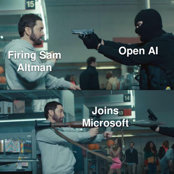 接下来就是各种消息乱成一锅粥,例如说Sam Altman离职打算自己开新公司了,还有一开始和稀泥的微软发现情况不对,联合其他投资方开始给OpenAI的董事会施加压力。