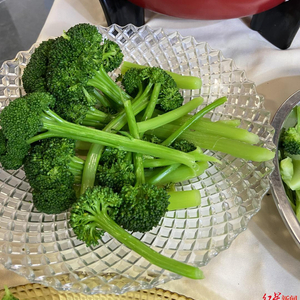 其实,水果化蔬菜并非只适合即食,它们在高温加热时更易软,节省烹饪时间。一般而言,西兰花根茎比较坚硬,味道寡淡,做菜时会弃之不用。而成都金田农业科技发展有限公司带来的“婉翠”松花型西兰花,根茎部分味道微甜,质地清脆,可以切片蘸料食用,也可以下锅翻炒。