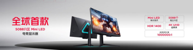 除了电竞级影刃2代手柄,红魔电竞宇宙还有两款规格极高的电竞显示器。首先是全球首款5088分区的miniLED电竞显示器,红魔为其配备4K 160Hz高刷,99%的DCI-P3广色域,色准 △E<1、还有满配的全速率接口。红魔5088分区的miniLED电竞显示器售价5999元,首发尝鲜价5499元。