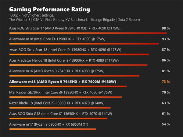 快科技11月28日消息,NotebookCheck最近测试了一台戴尔Alienware M18,配备了AMD顶级的处理器锐龙9 7945HX3D、顶级的显卡RX 7900M,发现性能表现可圈可点,就是Bug还不少,尤其是功耗方面。